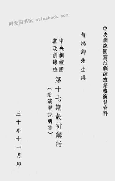 老图书–《*训练团*政训练班第十七期设计讲话》电子版合集