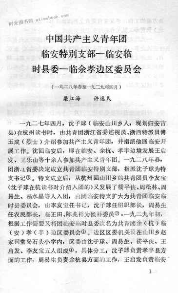 2-中国*主义青年团临安特别支部——临安临时县委——余(杭)临(安)孝(丰)边区委员会(一九二八年春至一九二九年四月)