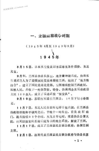 | 网盘路径:/时光图书馆珍藏系列/书籍文件/老图书/《兰西*史资料_第1辑_(*黑龙江省兰西县*的活动大事记_1945-1985)》电子版合集.db | ||