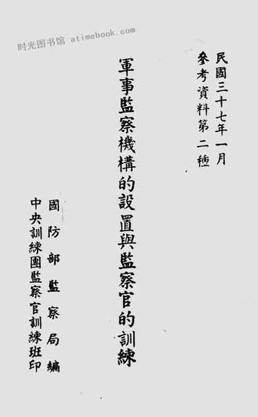 | 网盘路径:/时光图书馆珍藏系列/书籍文件/老图书/《*事监察机构的设置与监察官的训练》电子版合集.db | ||