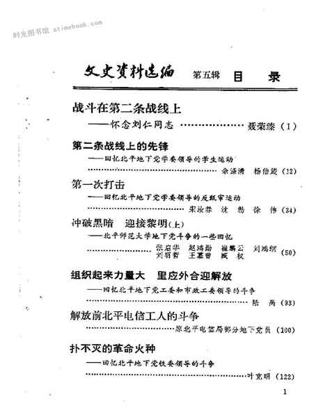 | 网盘路径:/时光图书馆珍藏系列/书籍文件/老图书/《北京市文史资料选编_第5辑_北平地下*斗争史料专辑_上》电子版合集.db | ||