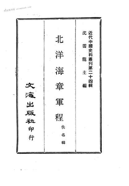 | 网盘路径:/时光图书馆珍藏系列/书籍文件/老图书/《北洋海章*程》电子版合集.db | ||