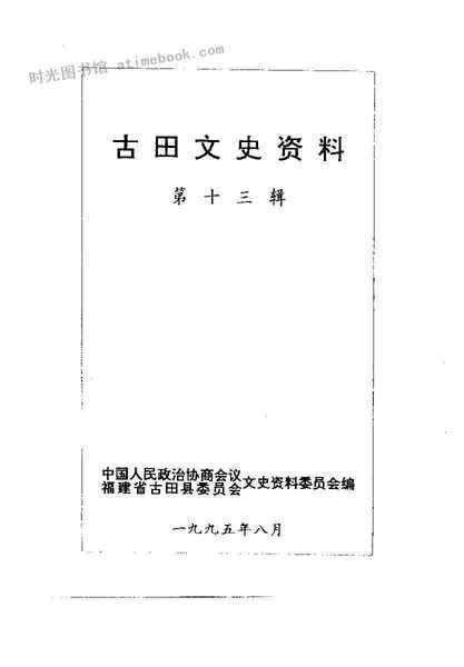 | 网盘路径:/时光图书馆珍藏系列/书籍文件/老图书/《古田文史资料_第13辑》电子版合集.db | ||