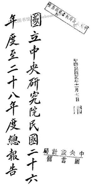 老图书–《国立*研究院民国二十六年度至二十八年度总报告》电子版合集