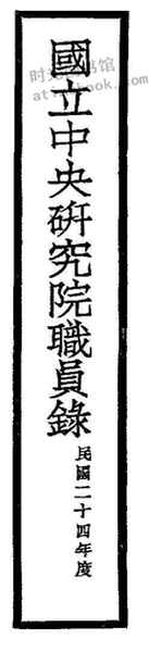 | 网盘路径:/时光图书馆珍藏系列/书籍文件/老图书/《国立*研究院职员录(民国二十四年度)》电子版合集.db | ||