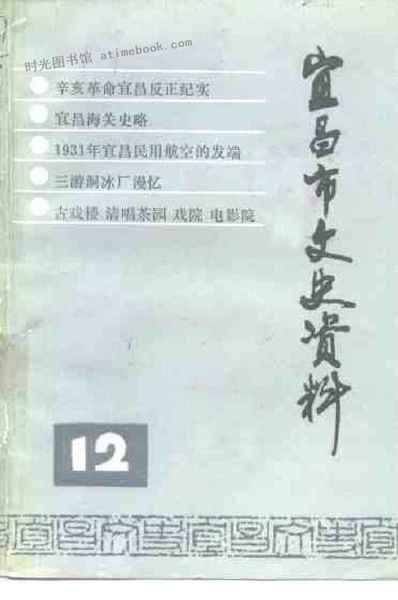 网盘路径:/时光图书馆珍藏系列/书籍文件/老图书/《宜昌市文史资料_第12辑》电子版合集.db | ||