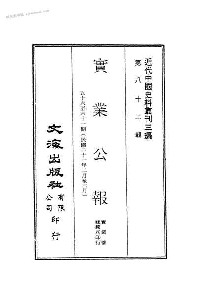 网盘路径:/时光图书馆珍藏系列/书籍文件/老图书/《实业公报五十六期至六十一期(民国二十一年二月至三月)》电子版合集.db | ||
