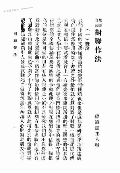| 网盘路径:/时光图书馆珍藏系列/书籍文件/老图书/《对联作法》电子版合集.db | ||
