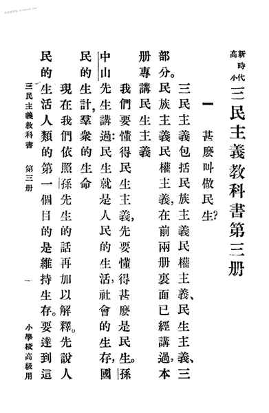 | 网盘路径:/时光图书馆珍藏系列/书籍文件/老图书/《小学校高级用新时代三民主义教科书_第3册》电子版合集.db | ||