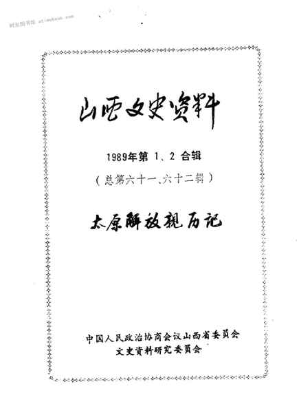 | 网盘路径:/时光图书馆珍藏系列/书籍文件/老图书/《山西文史资料_第61-62辑_华北最后一战-纪念太原解放40周年专辑》电子版合集.db | ||