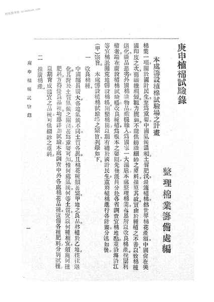 名称:《庚申植棉试验录》电子版合集