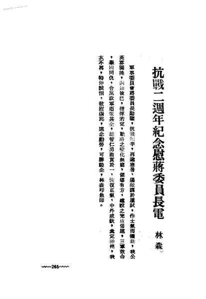 2-抗战二周年纪念慰蒋委员长电林森