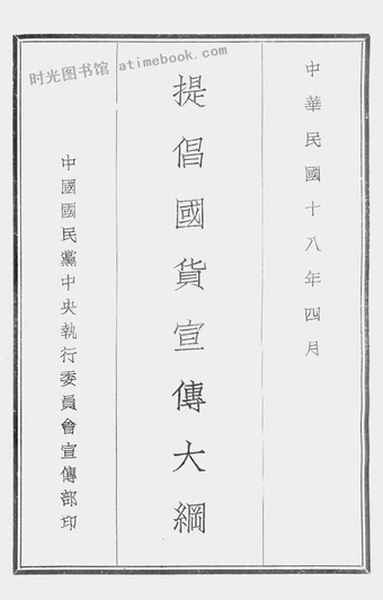 | 网盘路径:/时光图书馆珍藏系列/书籍文件/老图书/《提倡国货宣传大纲》电子版合集.db | ||