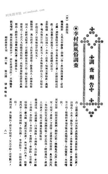 | 网盘路径:/时光图书馆珍藏系列/书籍文件/老图书/《李村区风俗调查》电子版合集.db | ||