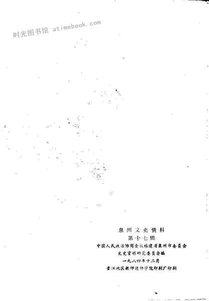 | 网盘路径:/时光图书馆珍藏系列/书籍文件/老图书/《泉州文史资料_第17辑》电子版合集.db | ||