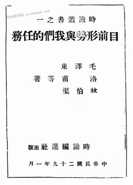 网盘路径:/时光图书馆珍藏系列/书籍文件/老图书/《目前形势与我们的任务》电子版合集.db