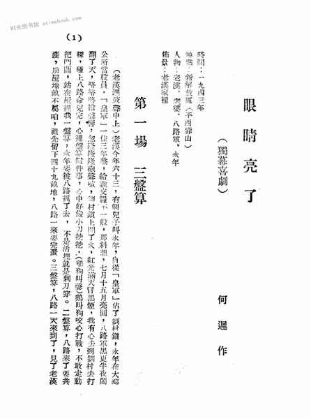 | 关键词:眼睛亮了,喜剧,独幕剧, | ||