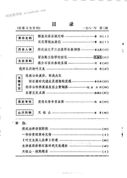 网盘路径:/时光图书馆珍藏系列/书籍文件/老图书/《长泰文史资料_1981年第2辑》电子版合集.db | ||