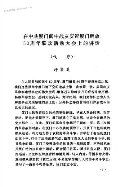 2-在*厦门闽中战友庆祝厦门解放50周年联欢活动大会上的讲话(代序)许集美