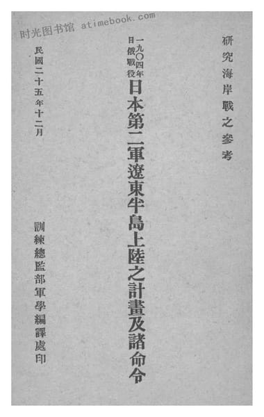 网盘路径:/时光图书馆珍藏系列/书籍文件/老图书/《1904年日俄战役日本第二*辽东半岛上陆之计划及诸命令》电子版合集.db