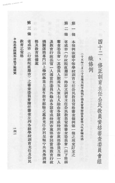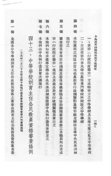 3-四十三、中等学校训育主任公民教员资格审查条例