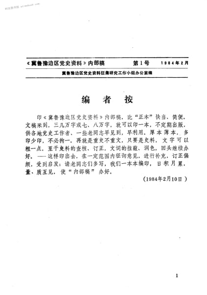 名称:《冀鲁豫边区*史资料_内部稿_第1号》电子版合集