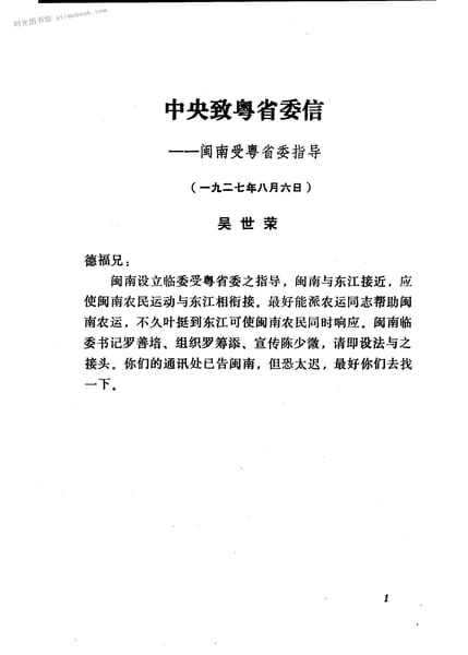 2-*致粤省委信——闽南受粤省委指导(一九二七年八月六日)