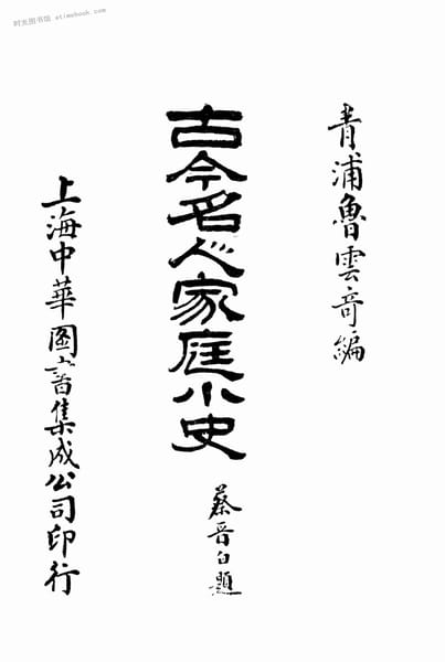 | 网盘路径:/时光图书馆珍藏系列/书籍文件/老图书/《古今名人家庭小史》电子版合集.db | ||