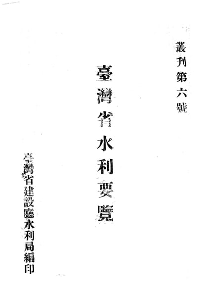 | 网盘路径:/时光图书馆珍藏系列/书籍文件/老图书/《台湾省水利要览》电子版合集.db | ||