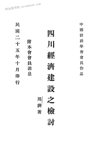 | 网盘路径:/时光图书馆珍藏系列/书籍文件/老图书/《四川经济建设之*》电子版合集.db | ||