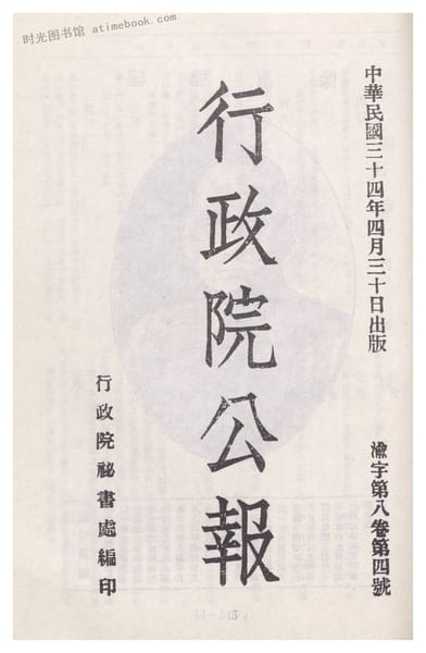 | 网盘路径:/时光图书馆珍藏系列/书籍文件/老图书/《国民**院公报_渝字_第八卷第四号》电子版合集.db | ||
