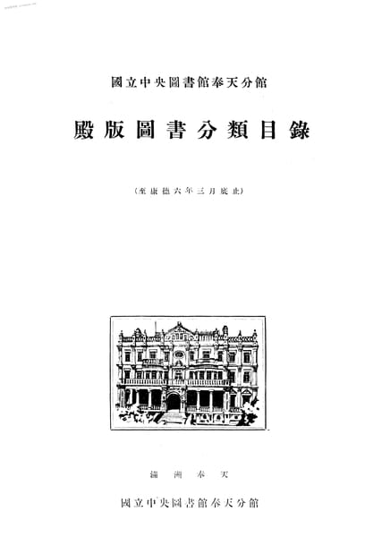 | 网盘路径:/时光图书馆珍藏系列/书籍文件/老图书/《国立*图书馆奉天分馆殿版图书分类目录》电子版合集.db | ||