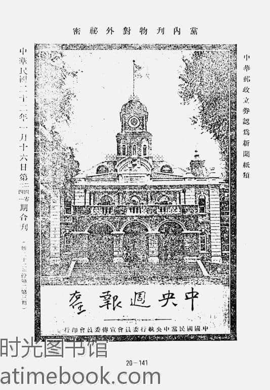 | 网盘路径:/时光图书馆珍藏系列/书籍文件/老报纸/江苏/《*周报》(南京)1928-1948/《*周报》(南京)1933-1948年.db | ||