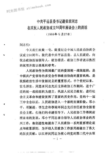 2-*平远县委书记谢荣章同志在庆祝人民*成立50周年座谈会上的讲话