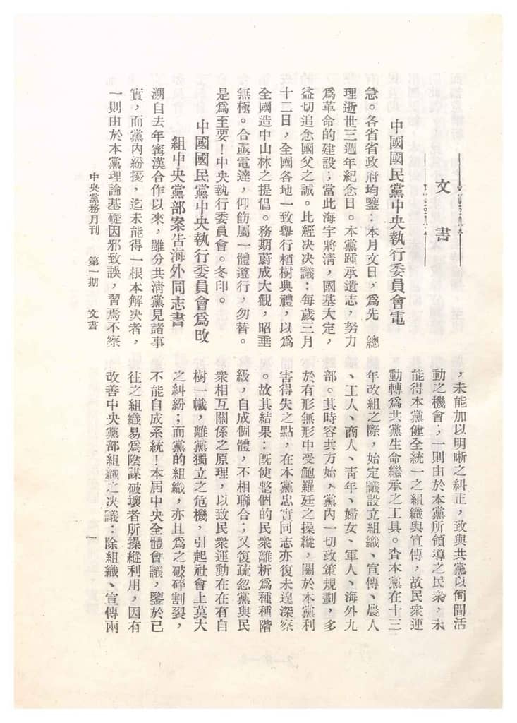 1930年总中国国民*第3届*执行委员会第3次全体会议特号(3月)