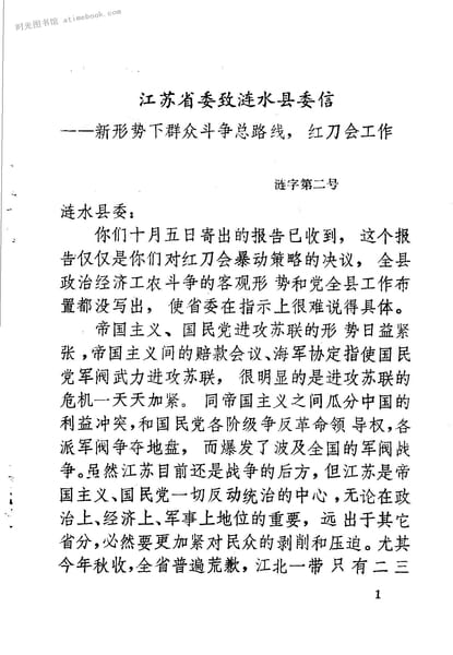 2-1、江苏省委致涟水县委信——新形势下群众斗争总路线、红刀会工作附涟水县委报告一一关于红刀会*的经过及我*对其策略