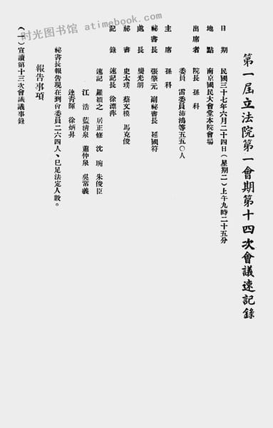| 网盘路径:/时光图书馆珍藏系列/书籍文件/老图书/《第一届立*第一会期第十四次会议速记录》电子版合集.db | ||