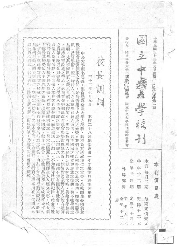 | 网盘路径:/时光图书馆珍藏系列/书籍文件/老杂志、老期刊/民国期刊/南京/《国立*大学校刊》(南京)1944-1945年合集.db | ||