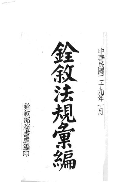 | 网盘路径:/时光图书馆珍藏系列/书籍文件/老图书/《铨叙法规汇编》电子版合集.db | ||