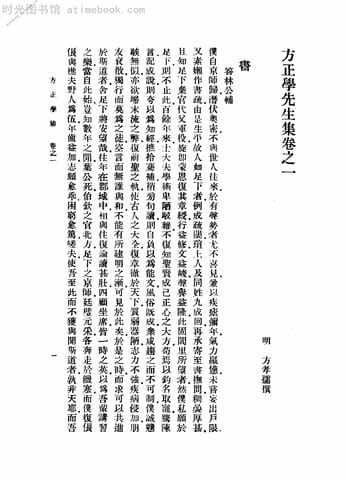 | 网盘路径:/时光图书馆珍藏系列/书籍文件/老图书/《方正学先生集_1》电子版合集.db | ||
