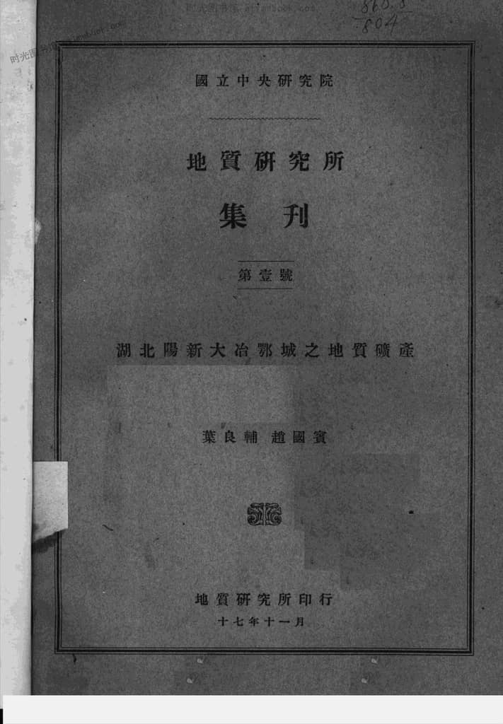 | 网盘路径:/时光图书馆珍藏系列/书籍文件/老杂志、老期刊/《国立*研究院地质研究所集刊》1928-1949年合集.db | ||