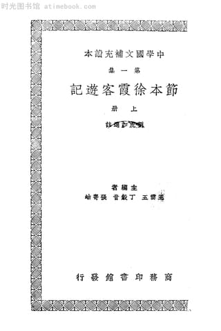 | 网盘路径:/时光图书馆珍藏系列/书籍文件/老图书/《节本徐霞客游记(上册)》电子版合集.db | ||