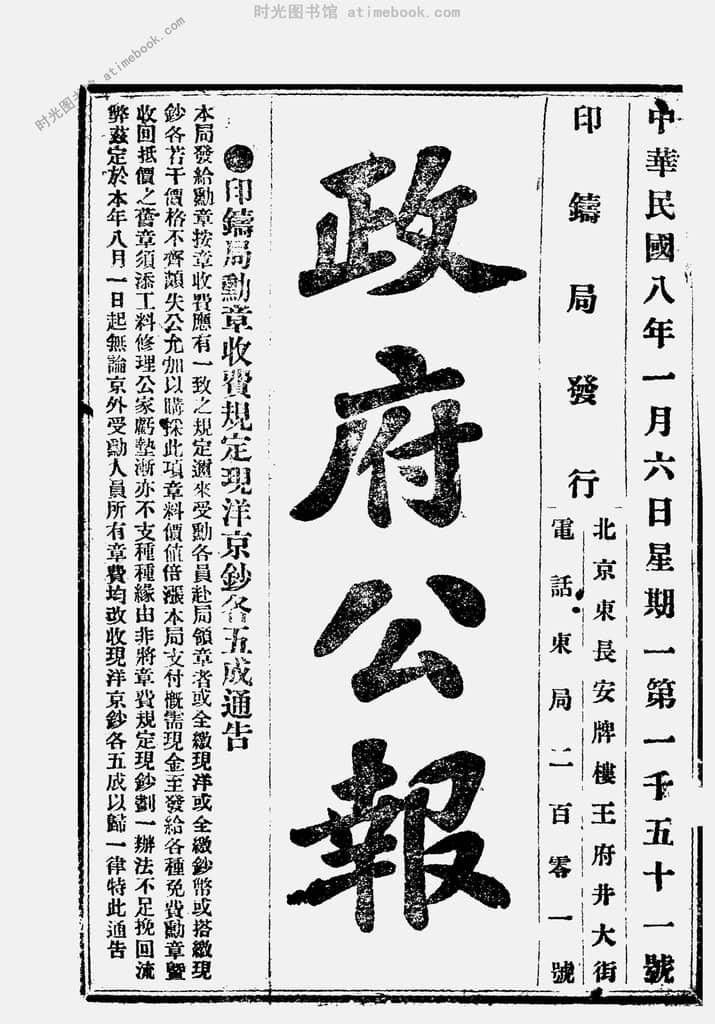 | 网盘路径:/时光图书馆珍藏系列/书籍文件/老报纸/北京/《*公报》(北京)1912-1920/《*公报》(北京)1919-1920年合集.db | ||