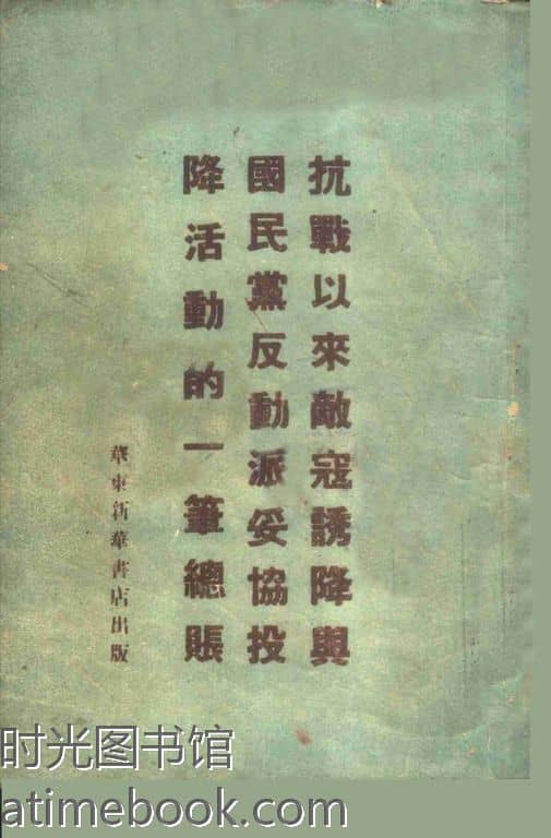 | 网盘路径:/时光图书馆珍藏系列/书籍文件/老图书/《抗战以来敌寇诱降与国民*反动派妥协投降活动的一笔总账》电子版合集.db | ||