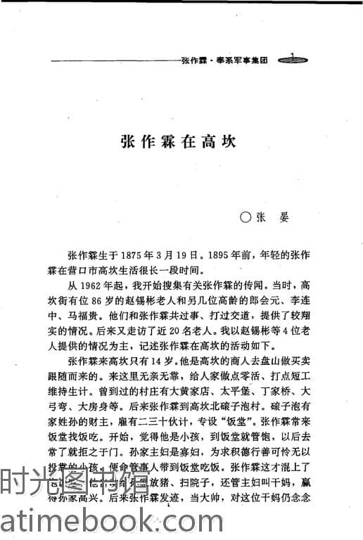 | 网盘路径:/时光图书馆珍藏系列/书籍文件/老图书/《辽宁文史资料精萃_张作霖·奉系*事集团》电子版合集.db | ||