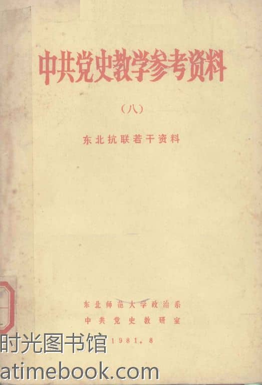 | 网盘路径:/时光图书馆珍藏系列/书籍文件/老图书/《中*史教学参考资料_(8)_东北抗联若干资料》电子版合集.db | ||