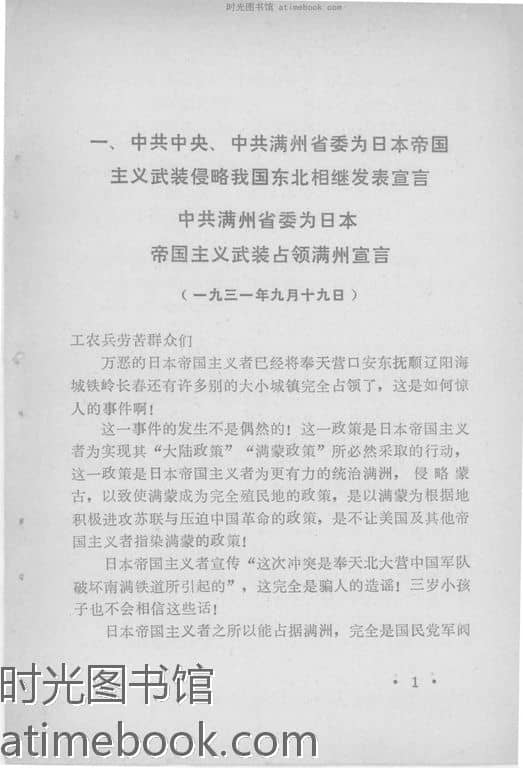 2-一、**、*满洲省委为日本帝国主义武装侵略我国东北相继发表宣言-01