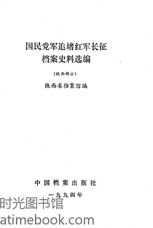 | 网盘路径:/时光图书馆珍藏系列/书籍文件/老图书/《国民**追堵*长征档案史料选编(陕西部分)》电子版合集.db | ||