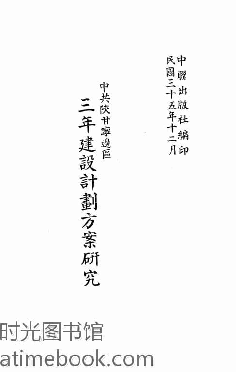 | 网盘路径:/时光图书馆珍藏系列/书籍文件/老图书/《*陕甘宁边区三年建设计划方案研究》电子版合集.db | ||