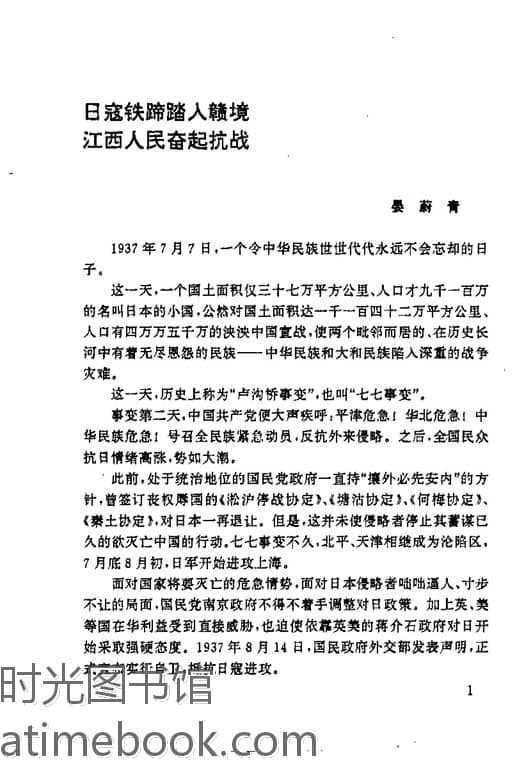 | 网盘路径:/时光图书馆珍藏系列/书籍文件/老图书/《江西*史资料_第34辑(江西抗战纪事)》电子版合集.db | ||